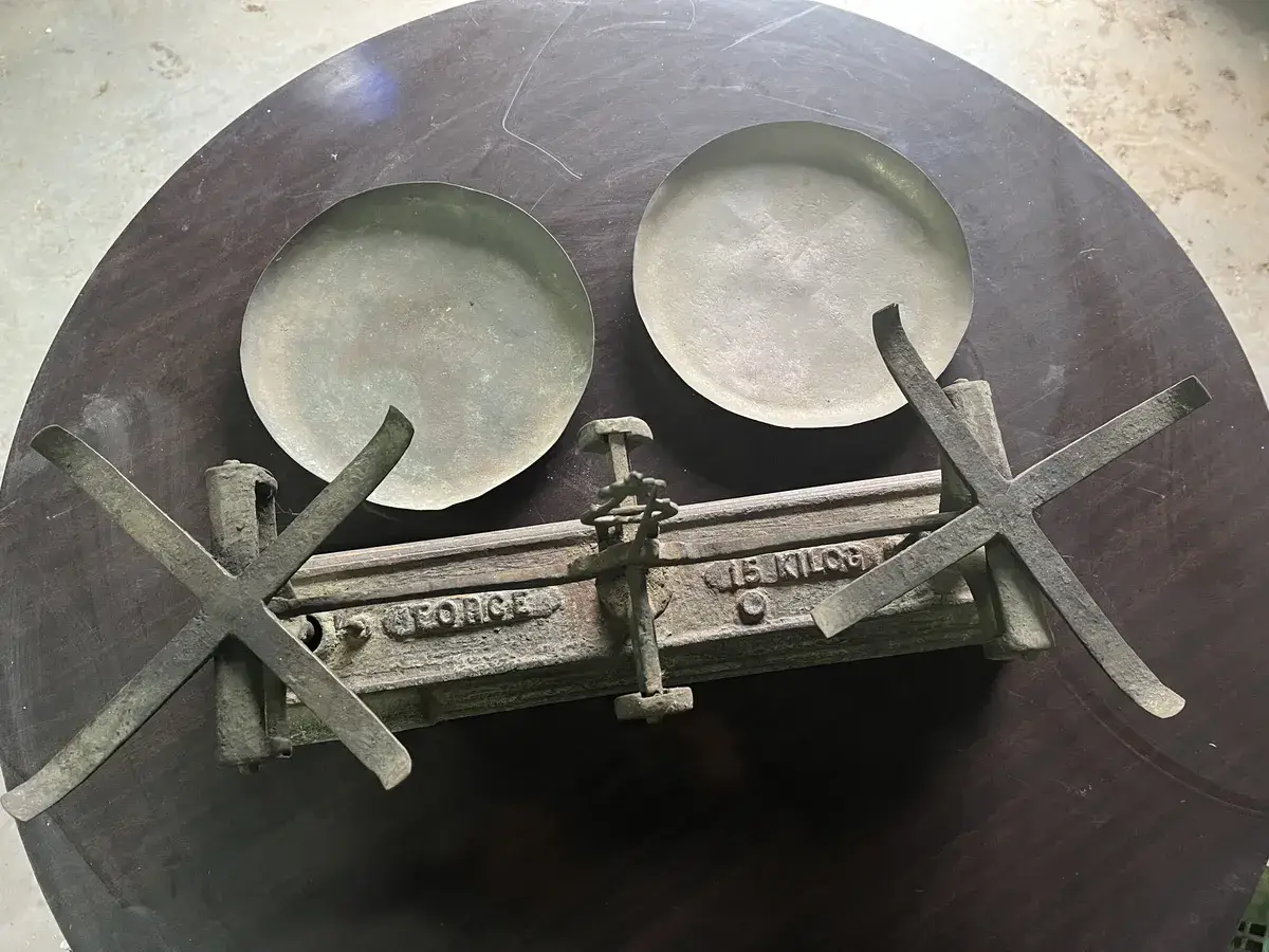 Balanza de hierro de quince kilos con platos. Marca Force
